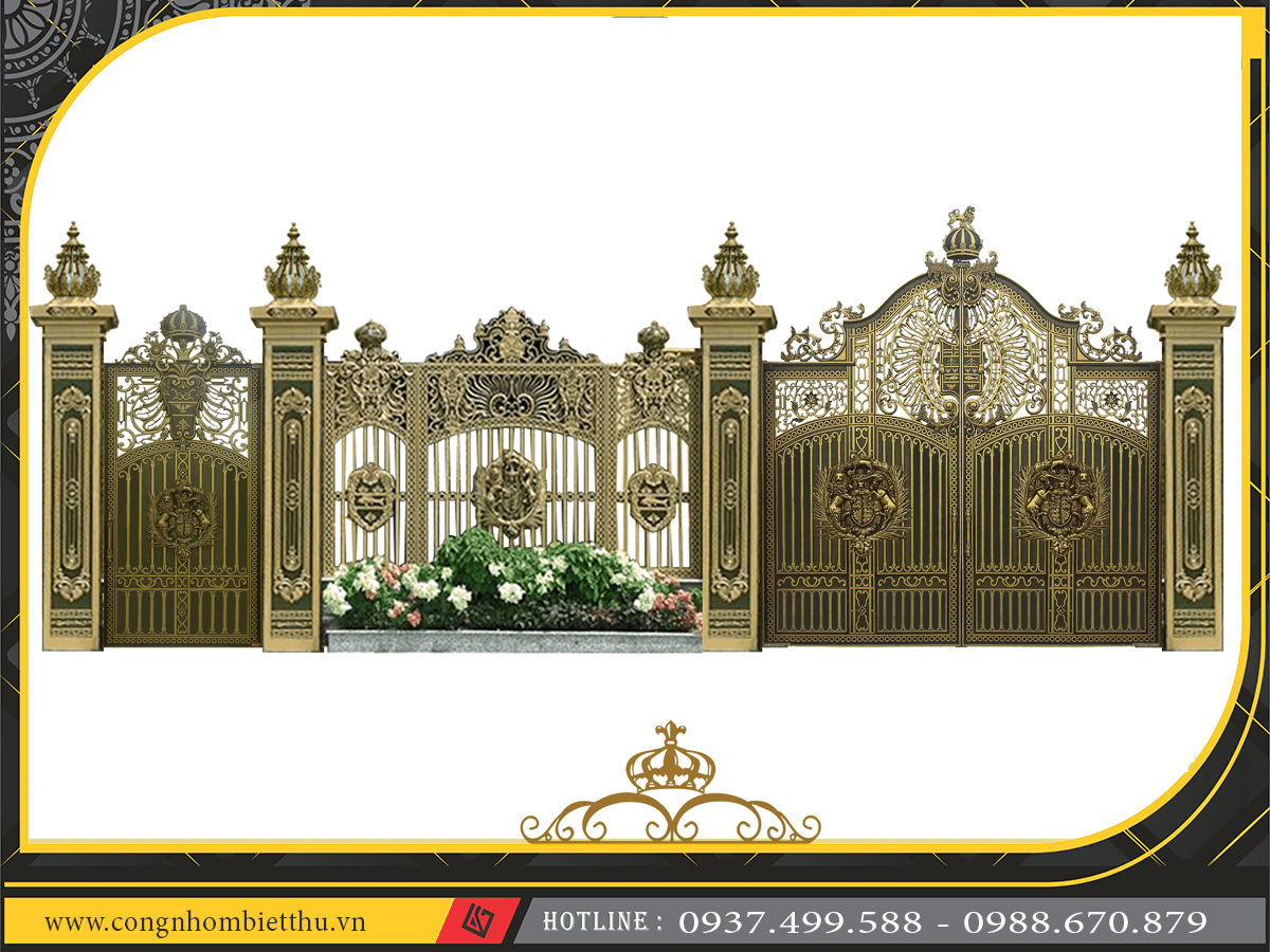 * Quý khách có thể chọn hoa văn có sẵn hoặc yêu cầu Đệ Nhất Cổng tư vấn và thiết kế mẫu cổng nhôm đúc theo ý tưởng của Quý khách. Hoặc Quý khách cũng có thể gửi mẫu để Đệ Nhất Cổng sản xuất theo mẫu.